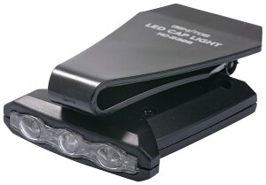 帽子に挟んで使うヘッドライト 明るさ : 20ルーメン、点灯時間 : 25時間 使用電池 : リチウムボタン電池CR2032 ×2個