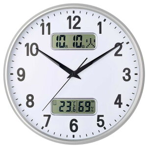 温度・湿度計付き壁掛け電波時計です。 厚さ(mm)54 高さ(mm) 色パールホワイトシルバー 直径(mm)350 電源時計用単3アルカリ乾電池×2本、ライト用単2アルカリ乾電池×3本(付属) 電池寿命約1年 電波40/60kHz、オ...