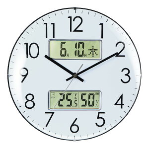 シンプルなデザインでどんなお部屋にも馴染む壁掛け電波時計です。 2つの基地局から自動で電波を受信し、常に正確な時を伝えます。 アナログでの時刻表示に加えて、温度、湿度、カレンダーを 表示するデジタルディスプレイも搭載してい