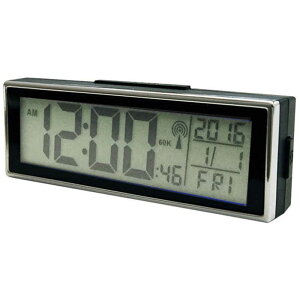 【商品説明】自動で正確な時刻やカレンダーを表示する全国受信対応の電波時計。上面のボタンを押すと、約5秒間ブルーバックライトが発光し、夜でもハッキリと確認できます。取り付けは「吊り下げ(ルームミラー等)」と「置き型(ダッ