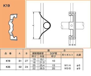 【商品説明】吊りボルトや丸鋼に電線管をワンタッチで支持できる交差金具です。工具を使わず、手だけで取付でき、スプリングの弾性の利用した振動に強い支持が可能。■表面処理:ダクロタイズド塗装■適合鋼製電線管:呼び19・外径φ19.