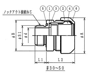 ケイフレックスとねじなし/薄鋼電線管の接続に。仕様●寸法(mm)A:64.9●寸法(mm)L1:40.4●寸法(mm)L2:34●挿入可ケーブル最大外径(mm):37●ねじなし/薄鋼電線管:E51/C51仕様2...