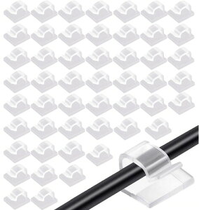 【商品仕様】セット:50個入りサイズ:縦16mmx横10mmx高さ3mm。直径約3mm以下のケーブルに対応しています。(注意:手作業で測定するため、1~2cmの誤差が生じる場合がありますのでご了承ください)。 【配線整理】机の周りに根...