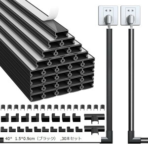urwckltl商品名配線カバー モールセット ケーブル隠しカバー コードプロテクター 簡単設置 電線ケーブルカバーブランドMozawaカラー40x 1.5x0.9cm(ブラック)サイズ等30本セット「工具不要...