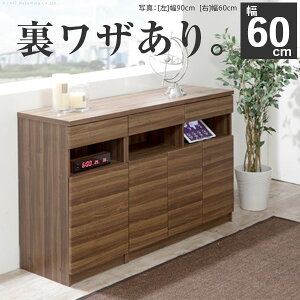 [商品名]キャビネット 北欧 チェスト 配線収納付きリビングキャビネット 幅90cm ファックス台 電話台 ルーター収納 Fax台 モデム収納 プリンターラック プリンター台 チェスト ウォールナット...