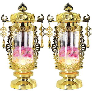 (11号)高さ約51cm材質本体:プラスチック。宗派を問わずお使いいただけます。お仏壇・祭壇・精霊棚などを華やかにする霊前灯。電気で点灯する、簡単・安全設計。対入(2個セット)。