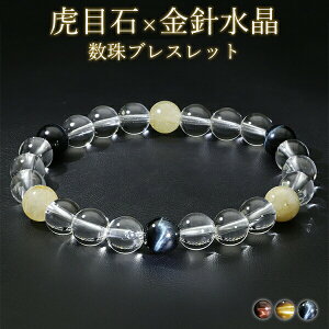 金運の石として名高いタイガーアイと金針ルチルクォーツに、水晶を組み合わせたブレスレットです。 タイガーアイは特有の美しい輝きをはっきりとご覧いただけるものを使用。 ルチルは透明感こそ目立たないものの、金針をしっかりと内