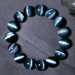 【神秘的な青光で魅了する!ブルータイガーアイ天然石ブレスレット】 青く輝くタイガーアイ、別名「ホークスアイ(鷹目石)」を使用した高品質パワーストーンブレスレット。 光の当たり具合で表情を変える美しい縞模様が特徴で、身に