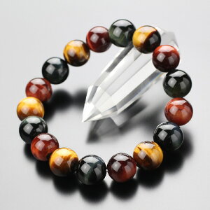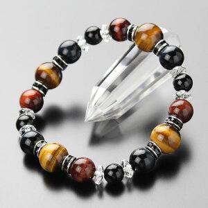コメント 赤虎目石・青虎目石・虎目石、3種類の虎目石を使用したデザインブレスレットでございます。カット水晶を使用することにより、すっきりした印象が加わり、スタイリッシュなブレスレットに仕上がっております...