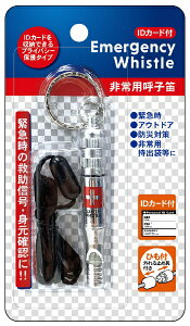 ボディ内部にIDメモ装填可能。非常時の救助信号や身元確認に携帯できる非常用ホイッスルです。ストラップ紐とIDカード付きで、アウトドアでの携帯や、防災対策として非常用持ち出し袋の備えにも。・