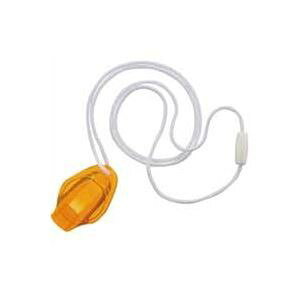 吹く力が弱くても大きな音圧で緊急を知らせます。 ●外形寸法(幅)[mm]:34 ●外形寸法(高)[mm]:52 ●ひも長さ:約80cm ●質量[g]:約10 ●色:オレンジ ●材質:メタクリル樹脂 ●JAN:4582197490094