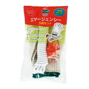 エマージェンシー3点セット アウトドア又は万一の非常時に役に立つ3点セット 商品情報 販売商品名 エマージェンシー3点セット 包装形態 PP袋(重量:約90g) パッケージサイズ 約125×245×30mm 商品サイズ ・軍手:フリー...