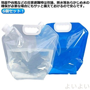 6個セット!地震や台風などの災害避難時は勿論、断水等あらかじめ水の確保が必要な場合にもサッと備えておけるので安心です。その他、キャンプやバーベキュー、ピクニック、海水浴など水道の無いアウトドアシーンでも大活躍します。安