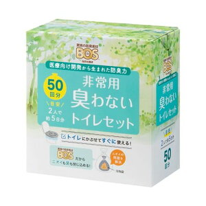 (1セット) ●セット内容/驚異の防臭袋BOS(白)×50枚、凝固剤×50袋、汚物袋(黒)×50枚、便器カバー(青)×2枚、取扱説明書…1枚 【BOS 非常用トイレセット 50回分 凝固剤、汚物袋、便器カバー...