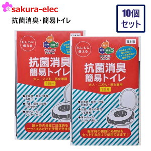 【まとめ買い10個セット】 抗菌消臭・簡易トイレ 1回分のトイレセット。 災害・断水・停電の時に便利です。 処理袋付で万が一の時に非常に役立ます。 凝固剤と処理袋がセットになっていますので、すぐに使用できます。 便器や簡易トイレ