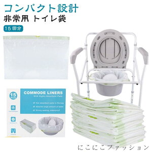 【15回分】【非常用 トイレ袋】【コンパクト設計】断水時にも役立つ、吸水シート付きポータブルトイレ用袋 ポータブルトイレに汚物袋をかぶせるだけで、用を足すことができます。 オシッコをすばやく固める吸水シートと汚物袋