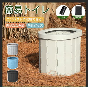 ・組み立て簡単、非常時の簡易トイレ。 ・本体を開いて、脚キャップで固定し、便器をのせるだけで簡単に組み立てできます。耐荷重量約120kg。 ・急な時でも組み立て簡単。おしっこをすばやく固める凝固剤付。 ・かぶせるだけの目隠し用簡易ポンチョ