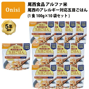 5年保存 非常食 尾西食品 アルファ米 尾西の五目ごはん ご飯 保存食 10食 (10袋) セット●商品特徴肉や魚を一切使わない、野菜中心の五目具材たっぷりのまぜご飯です。スプーン付きだから、何処ででもお召し上がりいただけます...