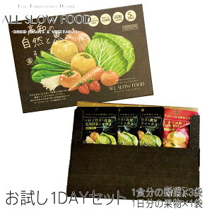 乾燥野菜、果物がそれぞれ1日分入ったセット商品。 可愛いデザインのポスト投函用BOXにてお届け。 オールスローフードの防災食のコンセプト 「保存しておきたくない保存食」ついつい食べてしまう美味しく便利なものを。 便利で衛生的な