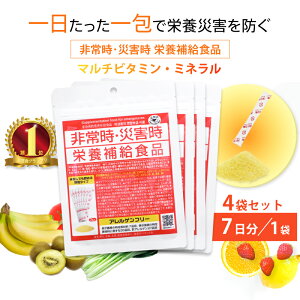 非常時・災害時 栄養補給食品 栄養機能食品 7包入4袋セット 日本初、アレルゲンフリー対応の非常時専用栄養機能食品 『マルチビタミン・ミネラル』として不足がちな栄養素を《1日一包》で! 東日本大震災における「栄養災害」。 実際に被