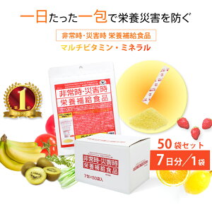 非常時・災害時 栄養補給食品 栄養機能食品 1袋7包入 50袋セット 日本初、アレルゲンフリー対応の非常時専用栄養機能食品 『マルチビタミン・ミネラル』として不足がちな栄養素を《1日一包》で! 東日本大震災における「栄養災害」。 実際