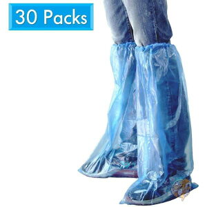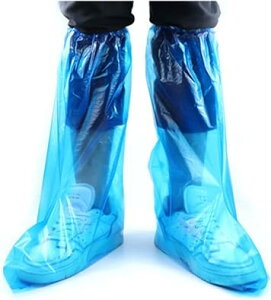 ロング丈の使い捨てシューズカバー10 足セットです!厚手の防水タイプなので靴やスーツの裾を雨や汚れから守ります。ひざ下にゴムが入っており、しっかり固定しながらも脱ぎ履きしやすい。雨の日、DIY、洗車、医療現場など様々な場面で