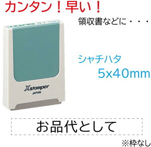 領収書の但し書きに丁度良いサイズのスタンプ 毎回面倒な但し書きの作業を押すだけカンタン、スピーディーに! ・印面内容:お品代として ・インク色:黒 ・書体:角ゴシック体 【商品情報】 サイズ5x40mm