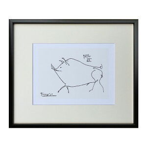 コション(子豚)。 かわいい子豚をモチーフに、黒いラインだけで表現したピカソのリトグラフ。 天然木フレームは、北欧やナチュラルインテリアの壁面をデコレートし