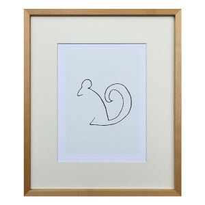 エキュルーユ(リス)。 かわいいリスをモチーフに、黒いラインの一筆書きで表現したピカソのリトグラフ。 天然木フレームは、北欧やナチュラルインテリアの壁面をデコレートし