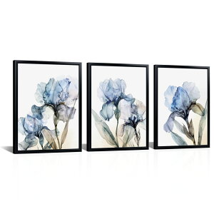 ブルーとブラウンを基調とした上品な水彩花卉画です。青い花の清涼感と茶色の背景の落ち着きが調和し、優雅で思慮深い雰囲気を創り出しています。この作品は「静かな癒し」を求める方に最適、昼は爽やかに、夜は落ち着いて映える配色