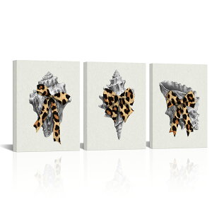 この装飾画は、3枚組で構成された作品です。各絵にはリボンで装飾された貝殻が繊細に描かれており、全体的に優雅で柔らかな色合いが特徴です。淡い色調を基調としており、温かくロマンチックな雰囲気を創り出しています。家居装飾に最