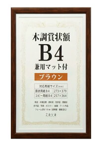 【仕様】 対応サイズ:賞状用紙B4(273×379mm)、 コピー用紙B4(257×364mm) 額縁外寸:305×410mm マット1枚付(B4コピー用紙窓寸:247×354mm) 重量:560g 本体:樹脂