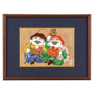 サイズ:縦30cm×横40cm 箱:紙箱 満面の笑みで楽し気な恵比寿様と大黒様が描かれた九谷焼の陶額です。 「恵比寿と大黒」は、七福神の中でも特に仲の良いペアとして知られ
