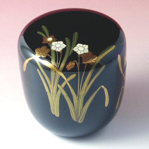 黒の中棗に水仙を描きました。冬から春にかけてにお使い下さい。サイズ直径6.8センチ×高さ7.2センチ 素材:漆塗り【送料無料】【代引き手数料無料】 こちらの商品は高額商品のため送料・代引き手数料無料となります...
