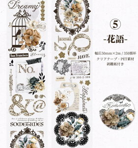 ◆平日16時迄のお支払いは当日出荷(土日祝を除く) 海外クリアテープ、コラージュ素材セットです 繊細なレース模様のペースに、鳥籠や花柄等と組合せた とてもお洒落の図柄です!存在感があり! 幅広50mm,ワイドタイプになっています! 透