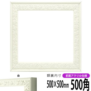 商品名 正方形額縁 9855/白 500角サイズ(500×500mm)前面UVカットアクリル仕様 色 白 商品情報 500角(額縁裏面内寸:500×500mm) 縁幅:36mm 縁厚:23mm ※7mm厚の作品まで額装可能...