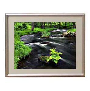 油絵 絵画 直筆仕上げ 涼-せせらぎ- アートフレーム:色シルバー サイズ 額入りS 310×260mm 【布キャンバス・額表面保護板】 油彩 風景画 オリジナルインテリア絵画 風水画 絵画 販売 インテリア...