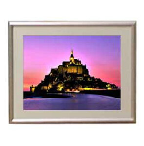 油絵 絵画 直筆仕上げ モンサンミッシェル-静謐な光- アートフレーム:色シルバー サイズ 額入りS 310×260mm 【布キャンバス・額表面保護板】 油彩 風景画 オリジナルインテリア絵画 風水画 絵画...