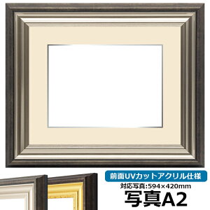 写真用額縁 8209/アンティークゴールド 写真A2(594×420mm) ☆前面UVカットアクリル仕様☆ マット付き 色 アンティークゴールド。写真A2(594×420mm)専用。マット中抜き:584×410mm...
