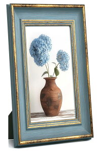 スタイル:レトロ◆商品名:Afuly 2L判 ヴィンテージ額縁エ レガ ン トなレトロ画像フレームブルーゴールドフォトフレームウォールハングデスク夏のホームデコレーションウェディングおばあちゃんママ女性のための誕生日プレゼントエ...