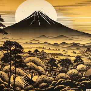 【このポスターについて】 このアートワークは、富嶽、あるいはふじの山とも称される、日本最高峰の山々を金色で描き出し、空間に豊かさと調和をもたらすデザインが特徴です。その温かな輝きは、現代の居住空間を彩るだけでなく、金運