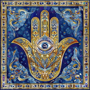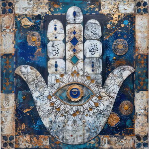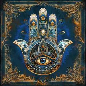 【このポスターについて】 心安らぐ守護の象徴、ハムサの手のポスターをご自宅に。この美しいアートワークは、「ハムサの手」や「ファティマの手」としても知られ、眼のモチーフが邪気を払い、良いエネルギーをもたらすと信じられてい