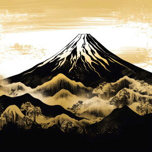 【このポスターについて】 このアートワークは、富嶽、あるいはふじの山とも称される、日本最高峰の山々を金色で描き出し、空間に豊かさと調和をもたらすデザインが特徴です。その温かな輝きは、現代の居住空間を彩るだけでなく、金運