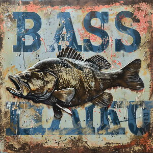 【このポスターについて】 このポスターは、バスフィッシングの興奮と静けさを捉えた一枚です。中心に描かれた力強いブラックバスが、釣りの瞬間の緊張感と歓喜を表現しています。水しぶきを上げながら飛び跳ねるバスのダイナミックな