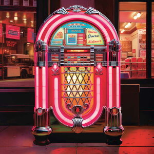 【このポスターについて】 このポスターは、70年代や80年代のアメリカのエッセンスを凝縮したデザインです。モチーフには、活気に満ちた人々の様子、光輝くマッスルカー、そしてレトロなダイナーが取り入れられており、その時代の自由