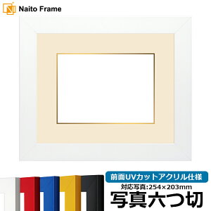 商品名 写真用額縁 5906 写真六つ切(254×203mm)専用 レッド/イエロー/ブルー/ホワイト/ブラック 前面UVカットアクリル仕様 マット付き(金色細縁付き) 色 フレームカラー:レッド/イ...