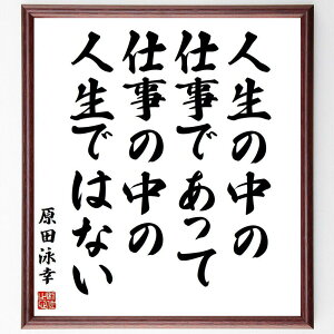 【商品説明】原田泳幸の名言「人生の中の仕事であって、仕事の中の人生ではない」を書道家が毛筆書道で色紙に直筆、額に入れてお届けします。当店では挑戦、努力、成功、幸福、感謝、成長、家族、仕事、自己啓発など様々なテーマから