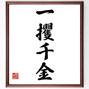【商品説明】名言「一攫千金」を書道家が毛筆書道で色紙に直筆、額に入れてお届けします。当店では挑戦、努力、成功、幸福、感謝、成長、家族、仕事、自己啓発など様々なテーマから人生の糧となる名言、四字熟語、諺...