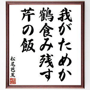 【商品説明】松尾芭蕉の名言「我がためか、鶴食み残す、芹の飯」を書道家が毛筆書道で色紙に直筆、額に入れてお届けします。当店では挑戦、努力、成功、幸福、感謝、成長、家族、仕事、自己啓発など様々なテーマから人生の糧となる名