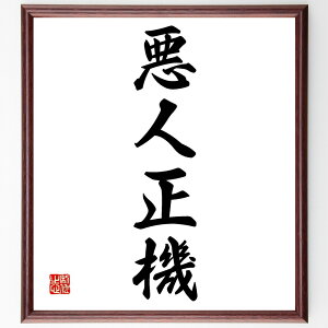 【商品説明】四字熟語「悪人正機」を書道家が毛筆書道で色紙に直筆、額に入れてお届けします。当店では挑戦、努力、成功、幸福、感謝、成長、家族、仕事、自己啓発など様々なテーマから人生の糧となる名言、四字熟語...